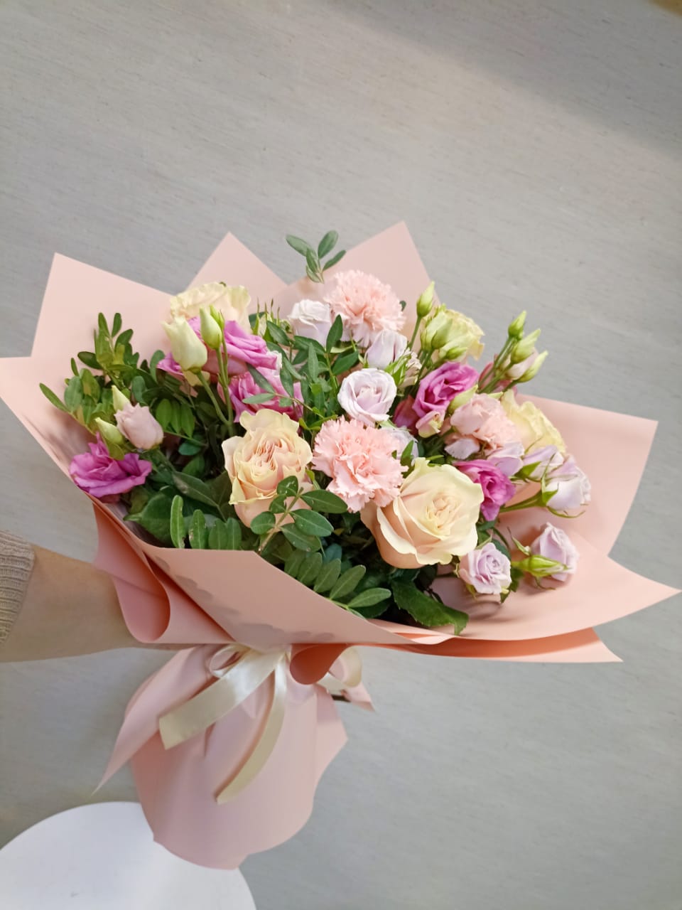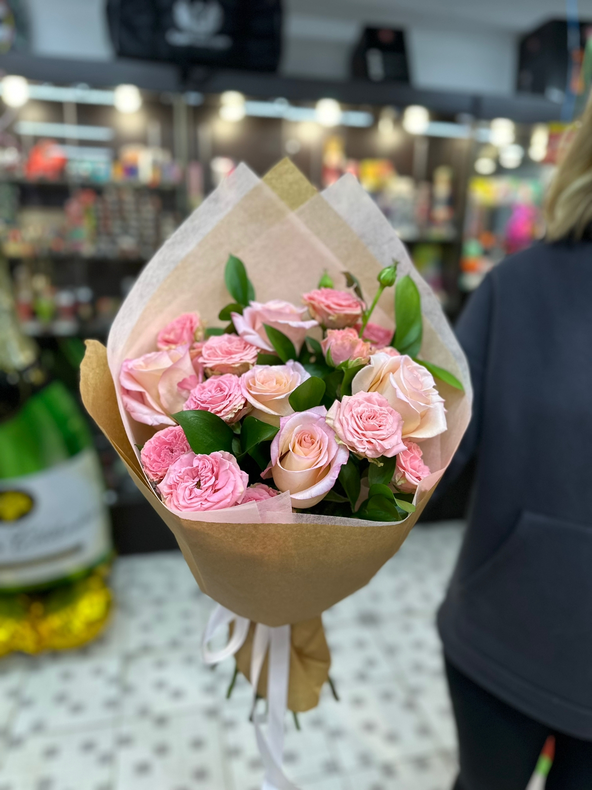 Этот букет цветов олицетворяет нежность и романтику. Шелковистые лепестки одноголовых и кустовых роз ярких оттенков создают великолепное сочетание пастельных тонов. Этот цветочный ансамбль погружает в атмосферу чувственности и ласки. Букет украшен стильной крафтовой упаковкой, которая добавляет ему неповторимости и натуральности. Идеальный выбор для выражения нежных чувств или как символ нежной женственности. Дарите "Инкогнито" и воплощайте в жизнь самые красивые эмоции и моменты.